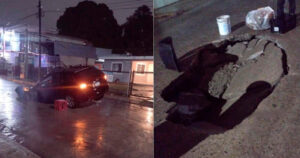 El conductor de una camioneta sufrió tremendo susto tras caer en un socavón que se formó en la zona norte de Tampico.