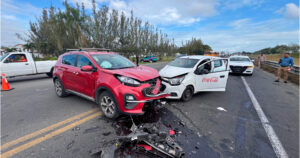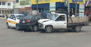 Una mala maniobra ocasionó un aparatoso choque entre un carro y una camioneta la mañana de este viernes.