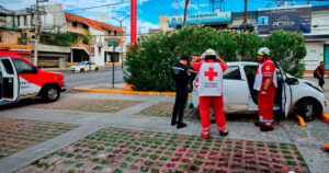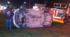 Este choque y vuelco con saldo de dos lesionados, fue provocado presuntamente por la omisión de alto en el transitado crucero