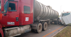 ALTAMIRA, TAMAULIPAS.- El choque entre dos tráileres y un automóvil provocó la volcadura de este último y dejó a cinco personas lesionadas. El percance ocurrió