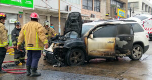 El fuego envolvió la unidad cuando se encontraba en el estacionamiento de conocidos laboratorios de la avenida Primero de Mayo.