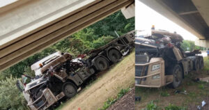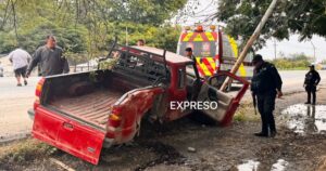 El conductor de un tractocamión sufrió lesiones en su cabeza y distintas partes del cuerpo tras quedar prensado.