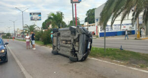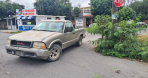 Por falla mecánica se atora acelerador y choca de reversa su camioneta contra joyería y al tratar de enmendar su error se estrella contra pared; dos salen heridos