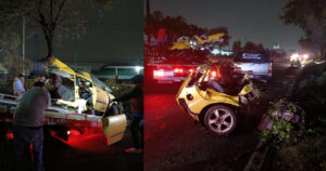 La parte delantera del vehículo cayó a un canal de aguas negras, mientras que los cuerpos quedaron regados por el lugar
