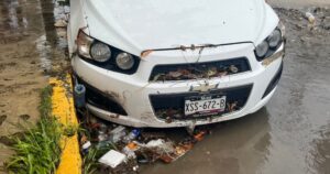 En la calle Centenario de la colonia Las Conchitas, 10 automóviles fueron arrastrados por la corriente de agua, provocando cuantiosos daños materiales.