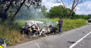 Tras el impacto el coche se incendió hasta quedar calcinado, el conductor resultó con heridas graves pero aún así sobrevivió.