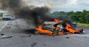 Un vehículo remolcado por transmigrantes se impactó con más unidades, lo que provocó un fuerte incendio