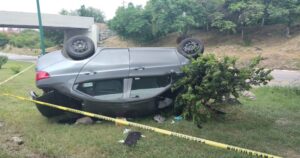 La unidad terminó en el camellón con los neumáticos hacia arriba.