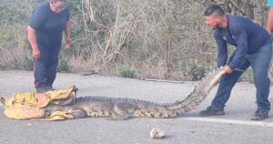 Cocodrilo muerde en una mano a un bombero, que junto a sus compañeros trataba de retirarlo del Corredor Urbano, personas lo había apedreado antes