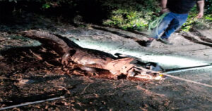 Cerca de las 22:00 horas, reportaron la caída de un árbol que medía alrededor de 6 metros