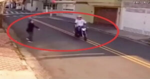 En video quedó la reacción de una mujer que corrió al creer que un motociclista la asaltaría; el clip ya es viral en redes sociales