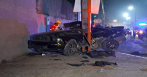 Estrella su auto deportivo contra torre eléctrica en el bulevar Fidel Velázquez, lo acompañaba su padre, quien resultó herido
