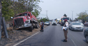 La pesada unidad quedó recargada con una construcción abandonada y no se reportaron personas lesionadas.
