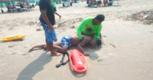 Rescatistas salvaron de morir ahogado a un joven de 25 años, originarios de la huasteca potosina en playa Miramar; tuvo que ser hospitalizado
