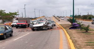 Una unidad que trataba de incorporarse a la Avenida de la Industria, justo en la bajada del puente del Barquito en Altamira, deja a su paso dos vehículos chocados y, tres personas lesionadas
