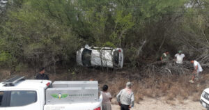Tras dar varias volteretas, el auto fue a parar entre la maleza y quedó sobre su costado izquierdo tres personas se lesionaron.