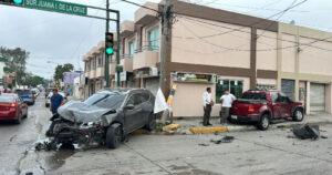 Una de las unidades quedó arriba de la banqueta luego del golpazo.
