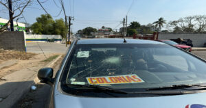 Antes de escapar, dañó con el puño el parabrisas de la unidad.