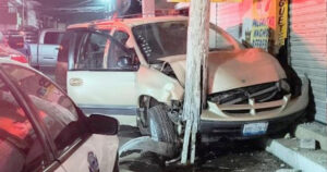 Camioneta choca con poste y local en centro de Altamira