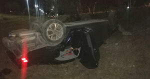 Un fuerte olor a alcohol despedía en el coche que quedó ‘llantas arriba’ sobre el libramiento Naciones Unidas.