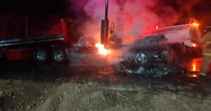 Un residente de un ejido de San Carlos quien conducía bajo los influjos del alcohol, chocó de frente su camioneta contra un camión el cual empezó a arder; las llamas alcanzaron un tráiler que también se quemó.