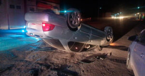 Conductor es vencido el sueño y tras torcer el volante pega a dos carros estacionados para luego maromear y quedar ‘de cabeza’.