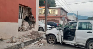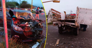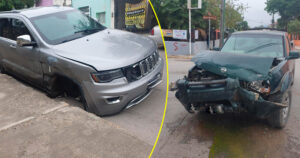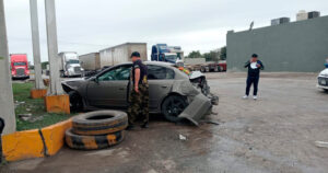Chofer de una pick up Nissan se estrella contra una camioneta blindada a la cual le desprendió un neumático en el 21 Matamoros.