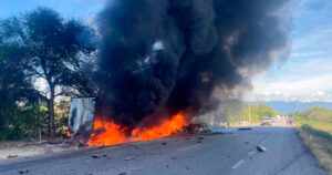 Un vehículo de la marca Jeep y un tráiler protagonizan brutal impacto y explosión, a unos kilómetros de Jaumave.