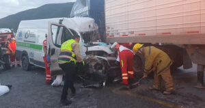 El empleado de una empresa de lavandería industrial, quedó atrapado en la unidad que conducía, luego de chocar con una grúa y proyectarse contra un tráiler.