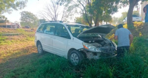 Una mujer resulta con golpes leves, luego que cansada luego de salir de trabajar pierde el control de la unidad y termina en el fondo de un tren pluvial