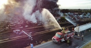 Presuntamente la quemazón inició con un coche que chocó contra un poste, reventó las líneas de alta tensión y produjo el fuego