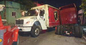 Camión distribuidor de cerveza se quedó sin frenos y chocó contra un tráiler estacionado