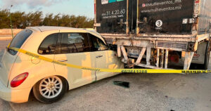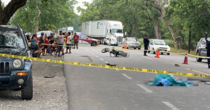 El operador de un trailer y un obrero que paleaba asfalto de una unidad de volteo perdieron la vida en este fatal accicdente