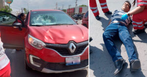 Esta distracción causó que el ‘don’ fuera embestido por una camioneta Renault frente a Soriana Palmas: sufrió golpes leves