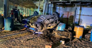 CIUDD MADERO, TAMAULIPAS.- Dos personas fallecieron tras registrarse la volcadura de un automóvil compacto, en el bulevar costero de playa Miramar, los primeros minutos del