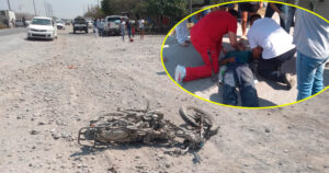 El estado del motociclista es reportado como grave, la unidad responsable es una S-10 con capacete de color blanco
