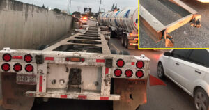 El conductor del trailer reconoce que su vehículo sufre una falla mecánica, por fortuna los vehículos que transitaban al lado no sufren algún accidente