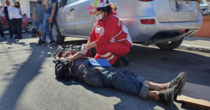 Poco le importó a la conductora de una camioneta blanca dejar en el suelo a una persona, tras embestirla en el 11 Matamoros
