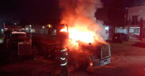Fue aproximadamente a las 03:00 horas cuando se recibió la alerta de que un vehículo de carga se encontraba en llamas