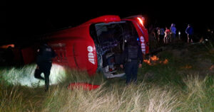 Viajaban 20 adultos y 10 menores, entre los cuales hay una niña grave. El chófer huyó del lugar.
