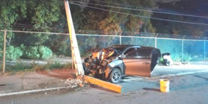 TAMPICO, TAMAULIPAS.- Lesiones graves sufrieron una mujer y su hija de tres años al impactarse la unidad en la que viajaban contra un poste de