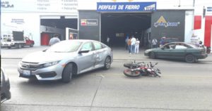 Un Honda Civic en color gris y una Italika negro con rojo protagonizaron el accidente.