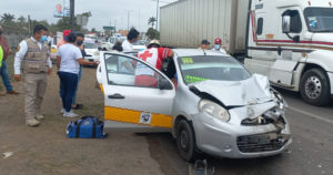 ALTAMIRA, TAMAULIPAS.- Tres pasajeras de un carro de ruta resultaron lesionadas la mañana de este jueves en un accidente registrado en la avenida de la