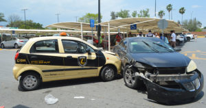 En su afán de ayudar a una clienta de HEB, echa a andar un coche en reversa y choca a tres vehículos, dos de ellos de reciente modelo: cayó en shock
