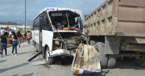 Imprudencia del chofer de un vehículo de transporte público provoca fuerte percance vial en el que 17 pasajeros ameritaron ser hospitalizados