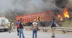Los cuerpos de cuatro personas, entre los que se cuentan dos menores fueron hallados tras el choque entre dos camionetas y un trailer, dos unidades ardieron en llamas