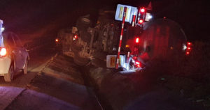 El operador de la pipa narró que volcó tras salir del camino, al dar un volantazo para evitar estrellarse contra un trailer que le invadió carril