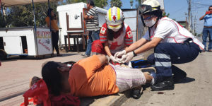 Una severa lesión en la pantorrilla que le causó una fuerte hemorragia, sufrió una adulta mayor tras ser arrollada por una motocicleta, en el 22 Hidalgo