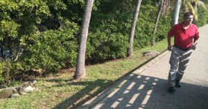 Los bomberos decidieron ahuyentar al animal para que regresara al agua. Poco a poco, el cocodrilo retrocedió hasta sumergirse en el vaso lacustre.