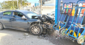 La parte frontal del carro particular quedó dañada debido al impacto.